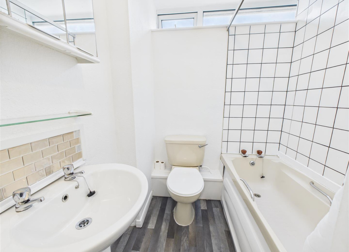 Bathroom - 1.71m x 2.25m (5'7" x 7'4") - Double glazed windows to rear with privacy glass, bathroom with white suite to include a bath with electric shower over, W/C  and hand wash basin.