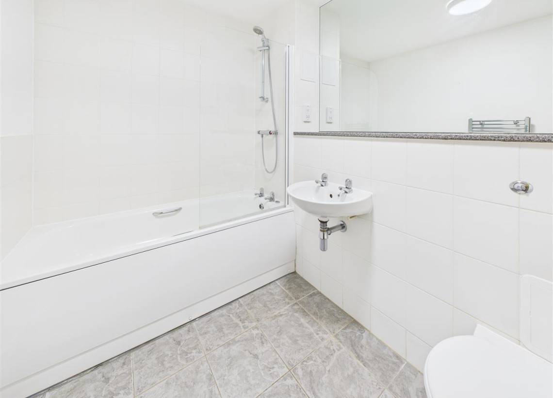 Bathroom - 2.50mx 1.67m (8'2"x 5'5") - Part tiled bathroom with white suite to include a bath with shower over, W/C and hand wash basin.