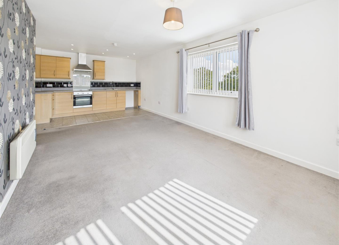 Open Plan Living - 3.29m x 7.07m (10'9" x 23'2" ) - Double glazed dual aspect windows, spacious open plan living with modern kitchen to include a fitted kitchen with range of wall and base units and integrated electric hob and oven.