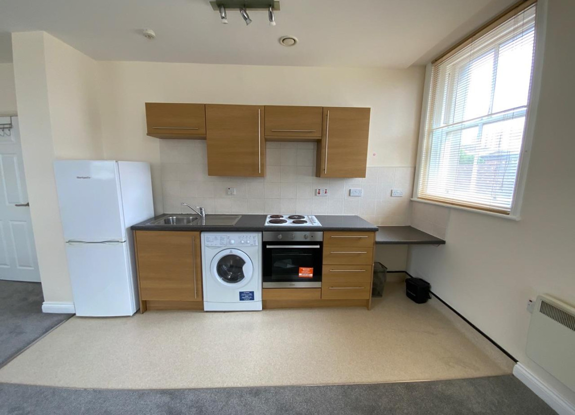 A spacious one bedroom city centre apartment benefiting from electric heating, secure entry intercom system and double glazing throughout. Comprising of large lounge, with open plan fitted kitchen with electric hob/oven, fridge/freezer and washing machine. There is a part tiled white bathroom suite with Electric shower.