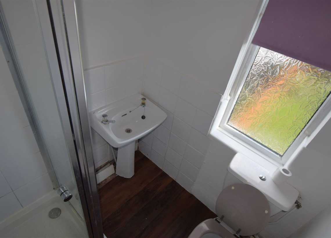Bathroom - 1.64m x 1.69m (5'5" x 5'7") - Double glazed window to rear with privacy glass, Part tiled bathroom with shower cubicle, W/C and hand wash basin.