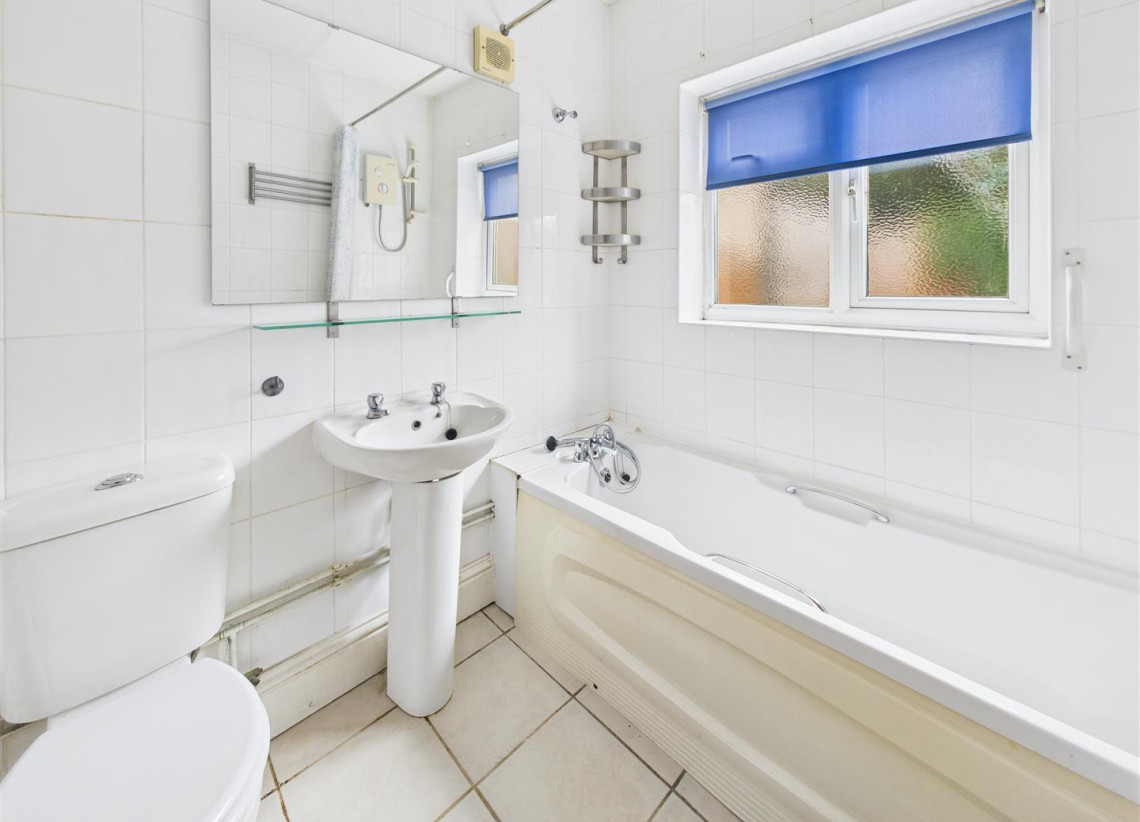 Bathroom - 2.06m x 1.82m (6'9" x 5'11") - Double glazed window to rear with privacy glass, part tile bathroom with white suite to include bath with shower over, W/C and hand wash basin