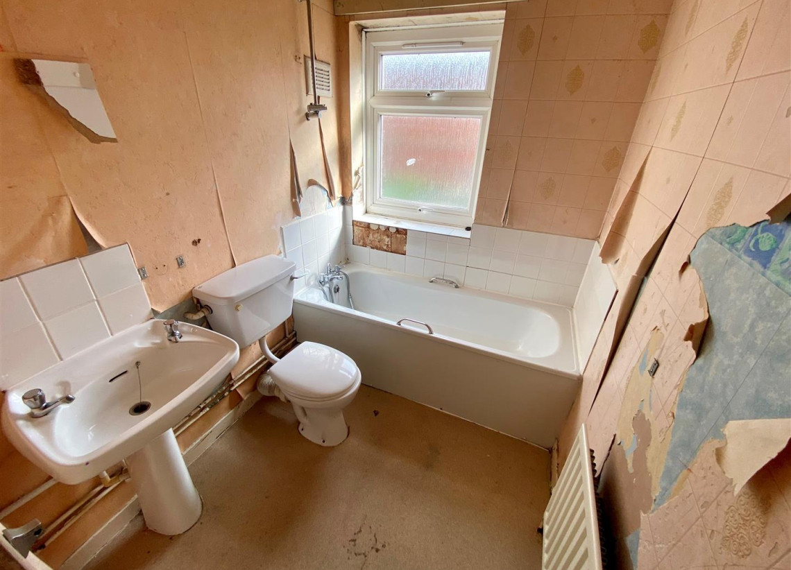Bathroom - 2.25m x 1.67m (7'5" x 5'6") - Double glazed window to rear, white suit to include bath, W/C and hand wash basin.
