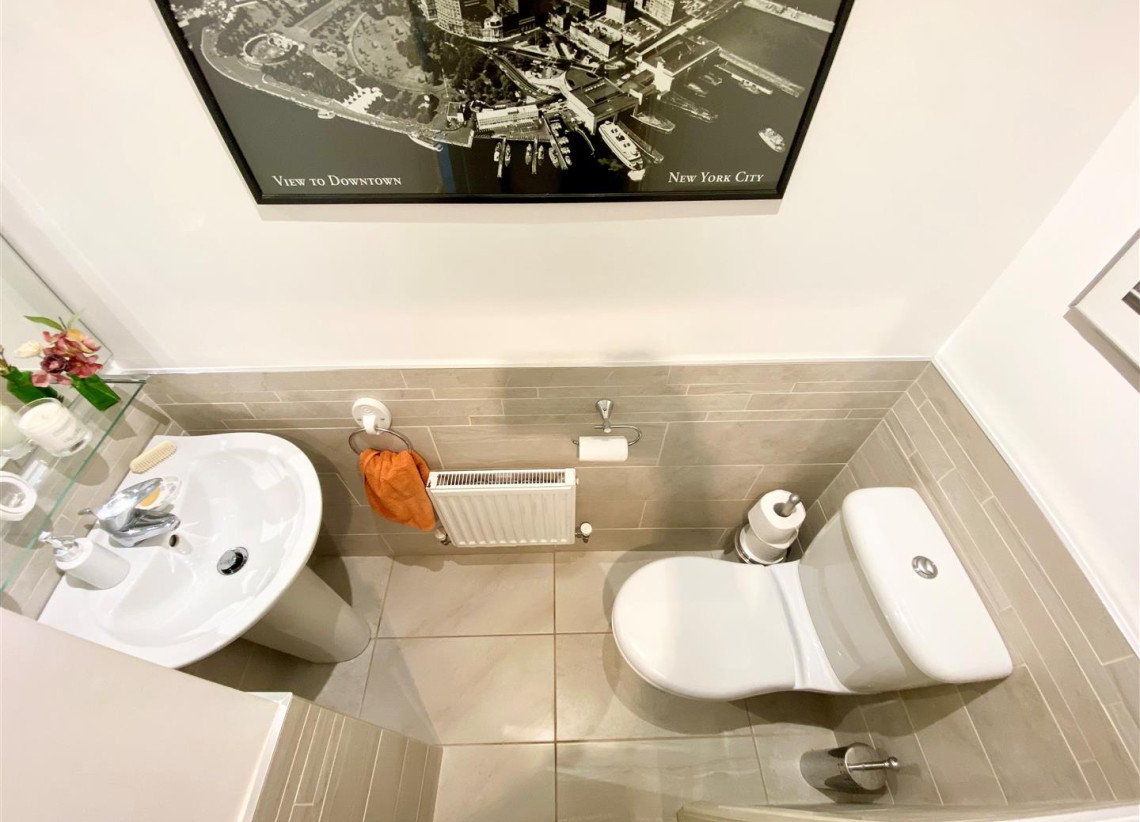 Downstairs W/C - 1.75m x 0.78m (5'8" x 2'6") - Part tiled downstairs W/C with hand wash basin.