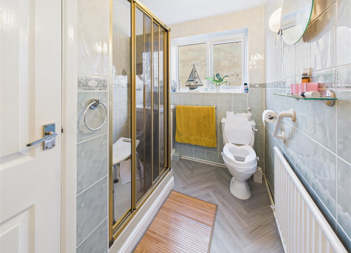 Bathroom - 1.79m x 2.65m (5'10" x 8'8") - Double glazed window to front, fully tiled bathroom with large shower cubicle, W/C and hand wash basin.