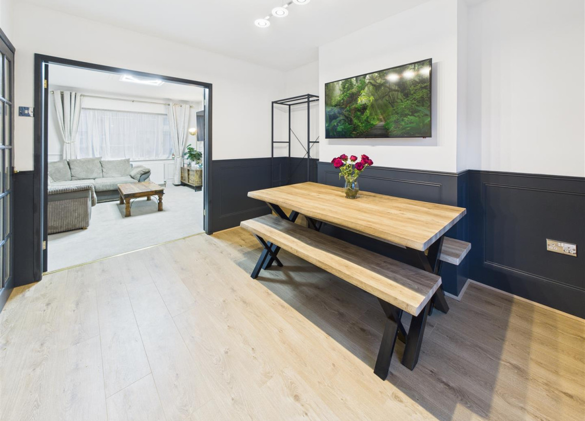 Dining Room - 2.97m x 3.63m (9'8" x 11'10") - Double glazed French Doors to rear leading to patio, modern dining room with laminate flooring.