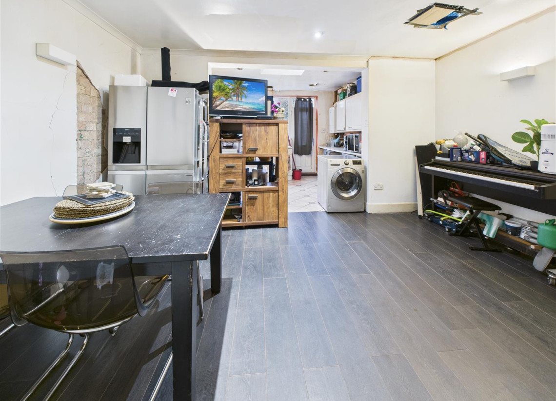 Dining Room - 4.47m x 3.12m (14'7" x 10'2") - Large dining room with laminate flooring and built in under stair storage, leads to kitchen.