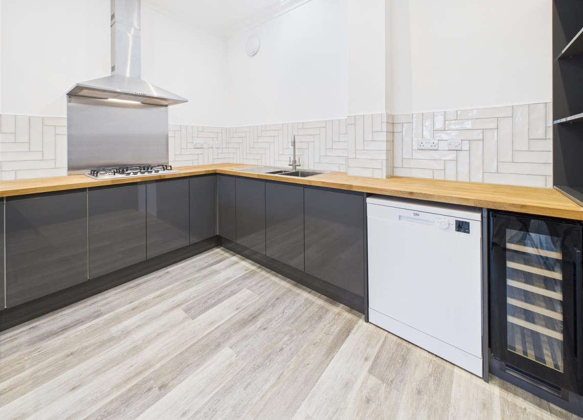 Open Plan Fitted Kitchen/Lounge - 6.88 x 3.91 (22'6" x 12'9") - Spacious and airy brand new fitted kitchen incorporating Lamona 5 ring hob, Hotpoint built-in microwave, Hotpoint built-in electric fan assisted oven, Beko dishwasher, solid oak worktops, graphite grey cabinets with pan drawers and pull out larder unit, wine cooler and Porcelanosa splash back tiles, skylight, radiator and extractor. The living space has double doors leading to balcony incorporating integrated blinds which overlooks the villlage of Hillmorton.