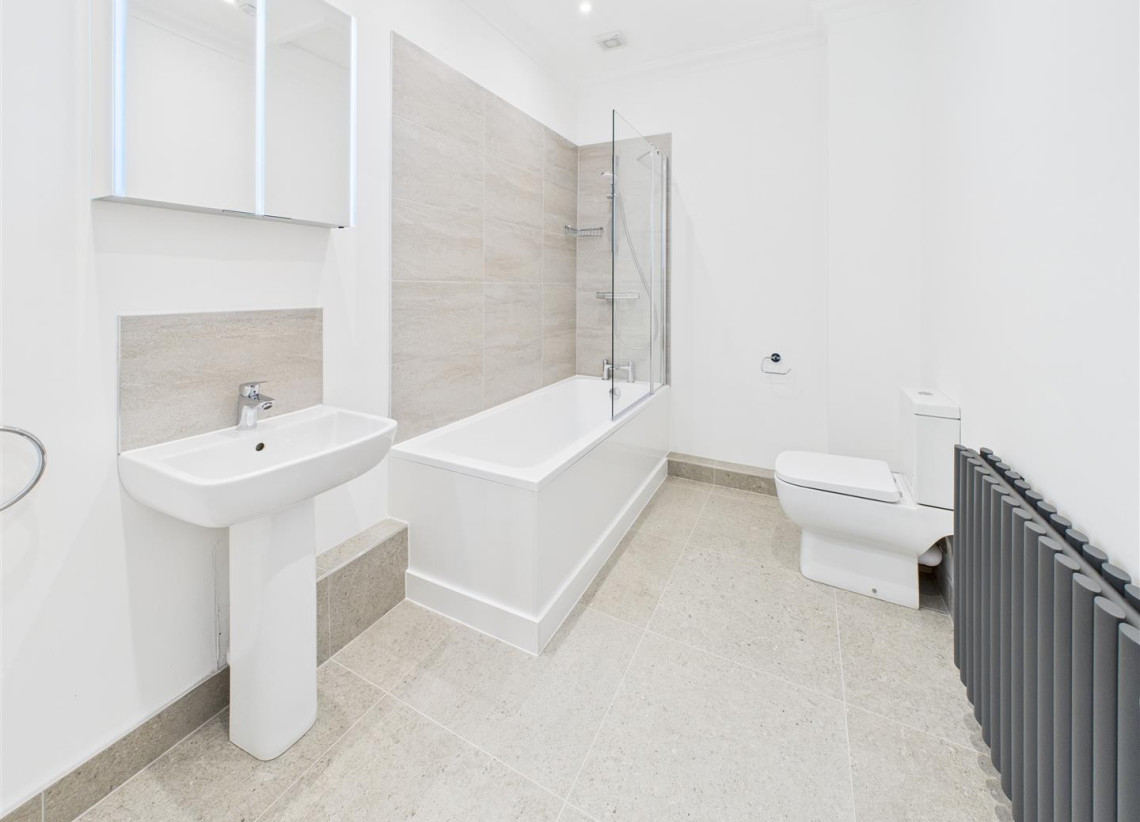 En-suite Bathroom - 3.14 x 1.96 (10'3" x 6'5") - Three piece bathroom suite comprising of panelled bath with thermostatically controlled shower over, low flush w.c., pedestal wash hand basin, vertical design radiator, illuminiated mirror bathroom cabinet, loft hatch and Porcelanosa wall and floor tiles.