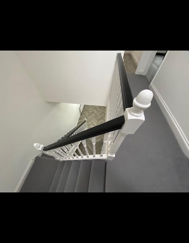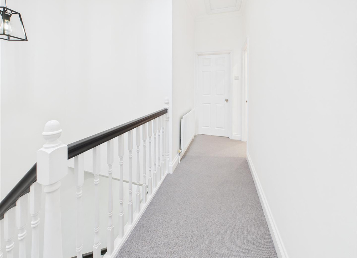 Stairs & Landing - 3.84 x 1.09 (12'7" x 3'6") - Stairs rising from the entrance hallway with skylight, loft hatch, radiator and Westex 100% wool carpet.