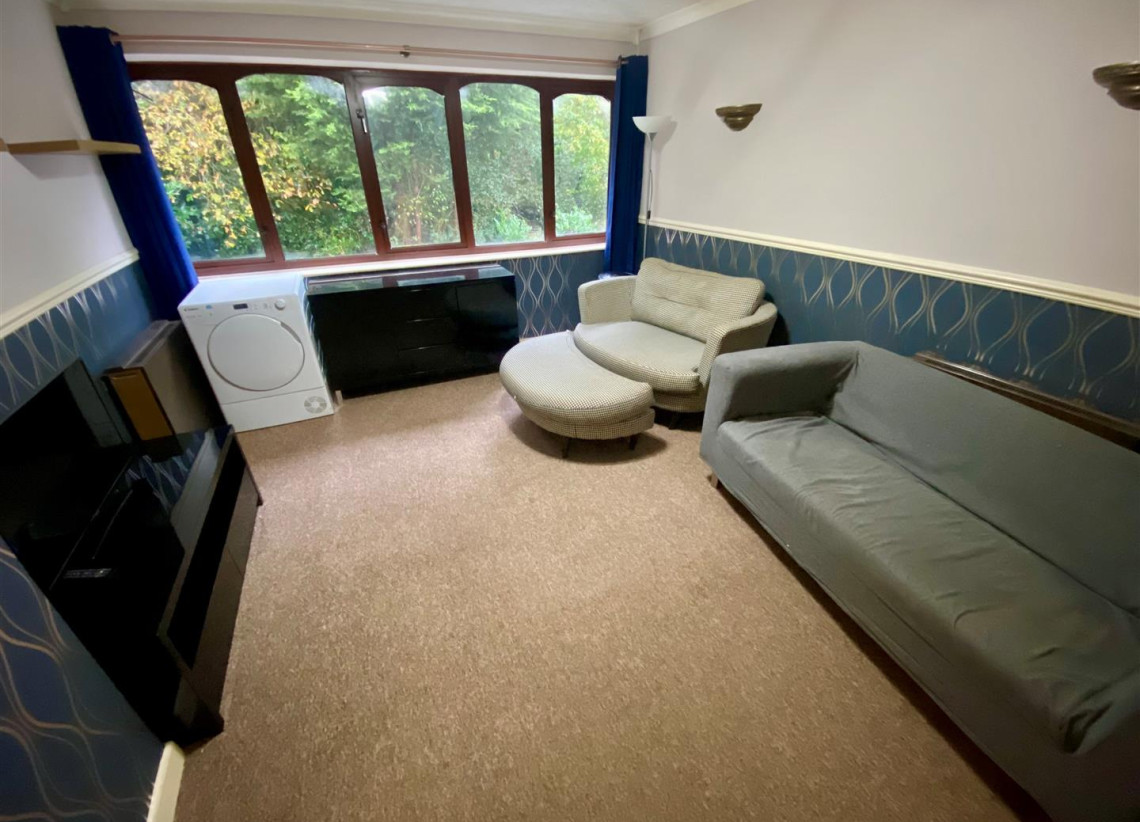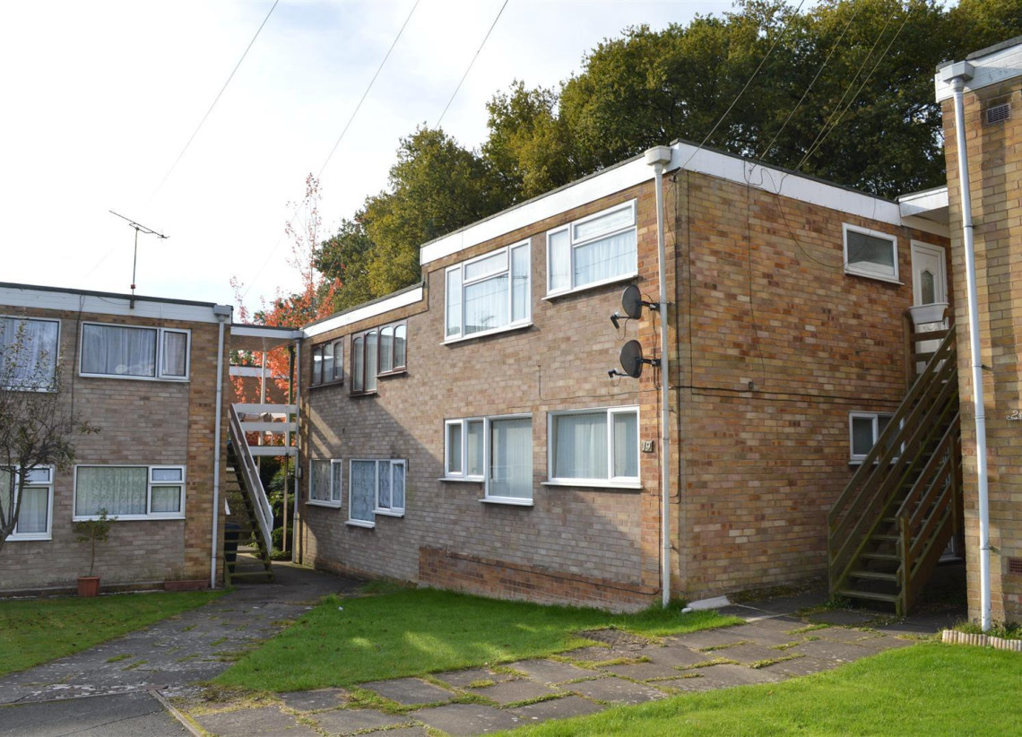 A two bedroom first floor flat with double glazing and electric heating, comprising of entrance hall leading to spacious living area, kitchen with range of wall and base units and part tiled shower-room with corner shower cubicle, the main bedroom features fitted wardrobes. Other benefits include garage, off road parking and lawned garden to side.