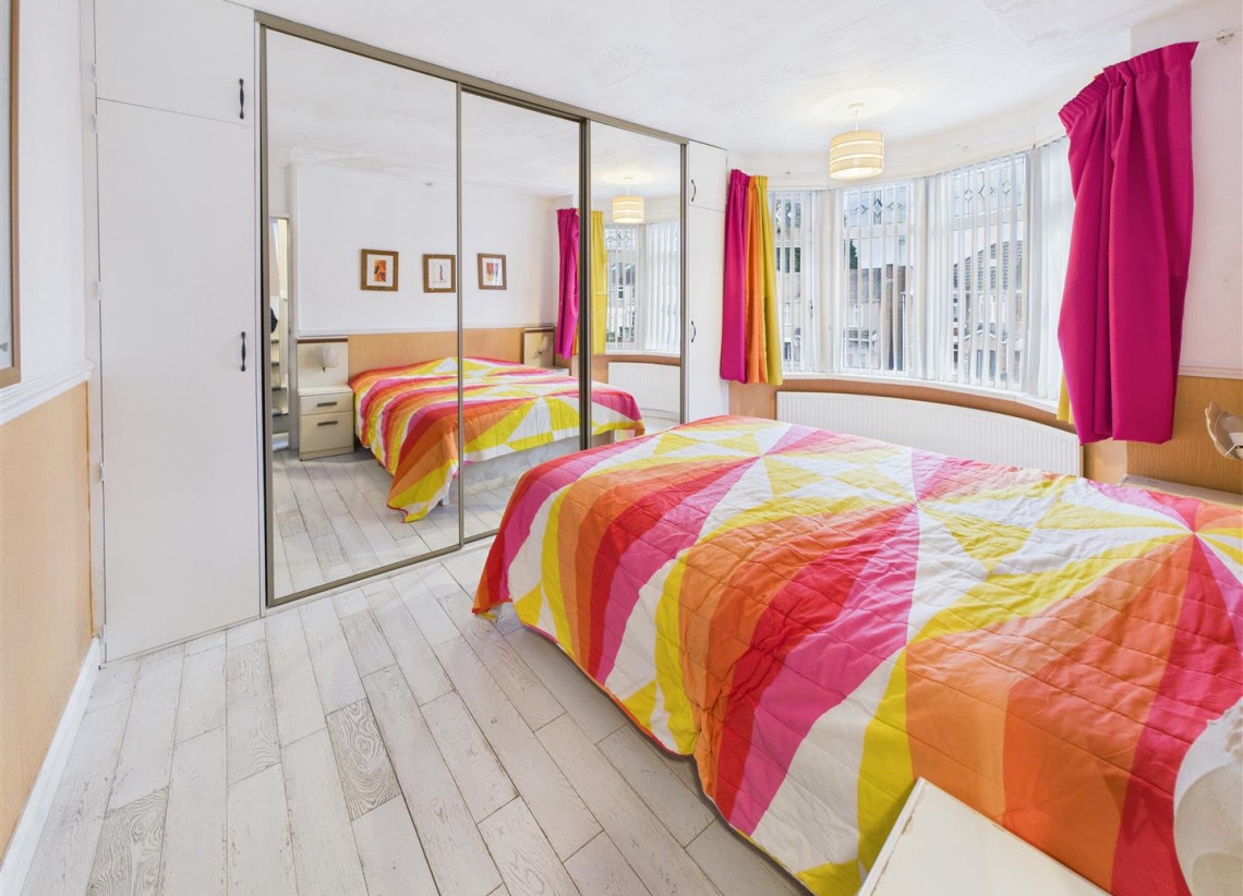 Bedroom 1 - 4.14m 2.53m (13'6" 8'3" ) - Double glazed bay window to front, large double room with 18mm hardwood flooring and fitted mirrored wardrobes.