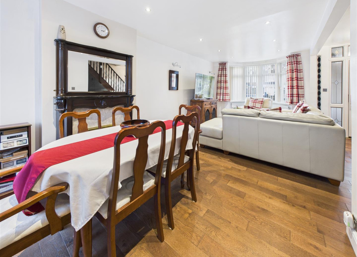 Open Plan Living Room - 7.79m x 5.06m (25'6" x 16'7") - Double glazed bay window to front and Patio doors to rear, spacious lounge/diner with 18mm hardwood flooring and feature fireplace.