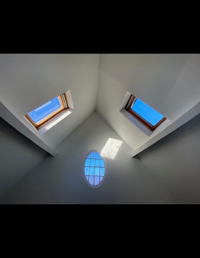 Open plan lounge/kitchen - 8.59 x 2.55 (28'2" x 8'4") - Spacious open plan living/dining/kitchen area with fitted wall and base units incorporating built-in Logik electric oven and hob and integrated Bosch dishwasher. The living area has a feature volted ceiling incorporating two skylights and oval shaped feature window, there are two electric heaters and the lounge/dining area is carpeted whilst the kitchen area is vinyl.