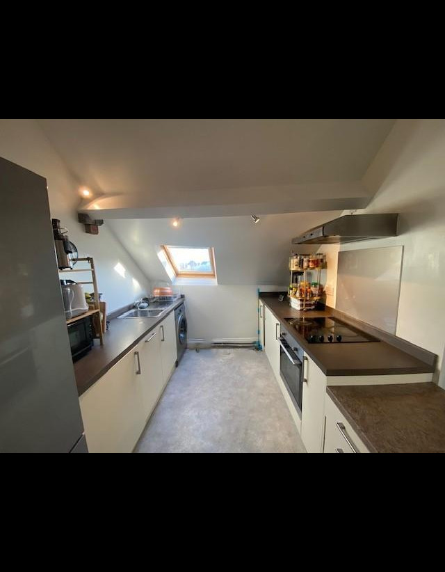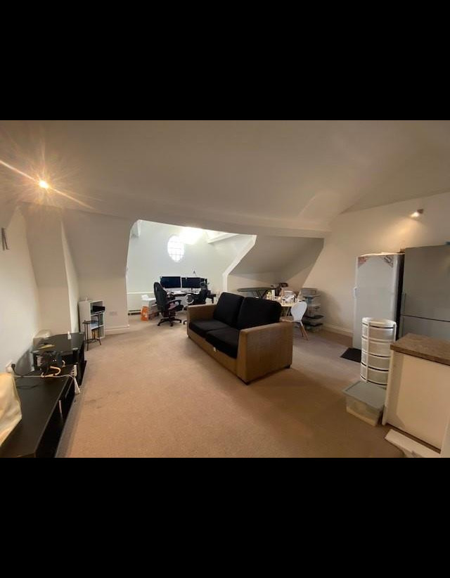 - Open plan living/kitchen with built-in oven/hob and dishwasher