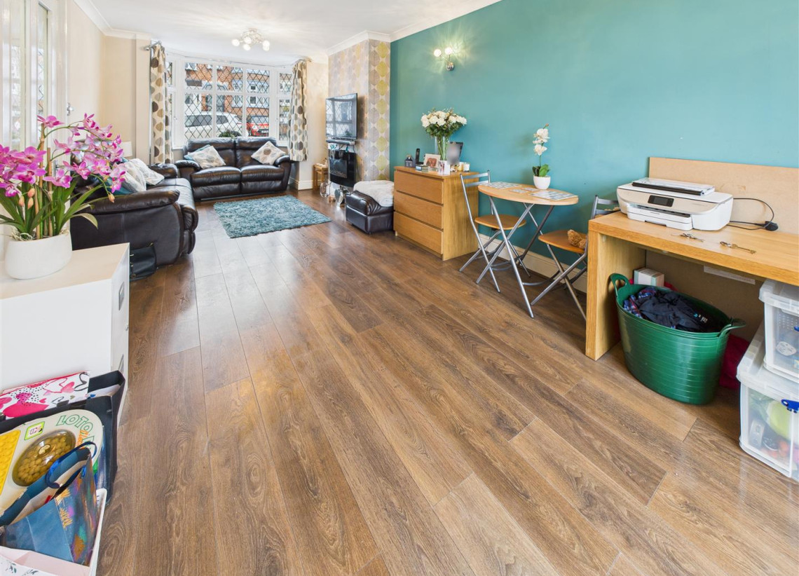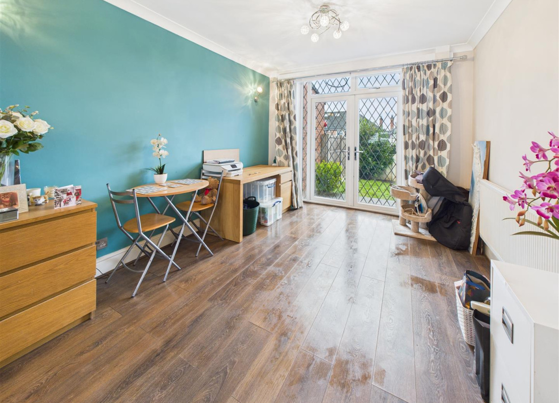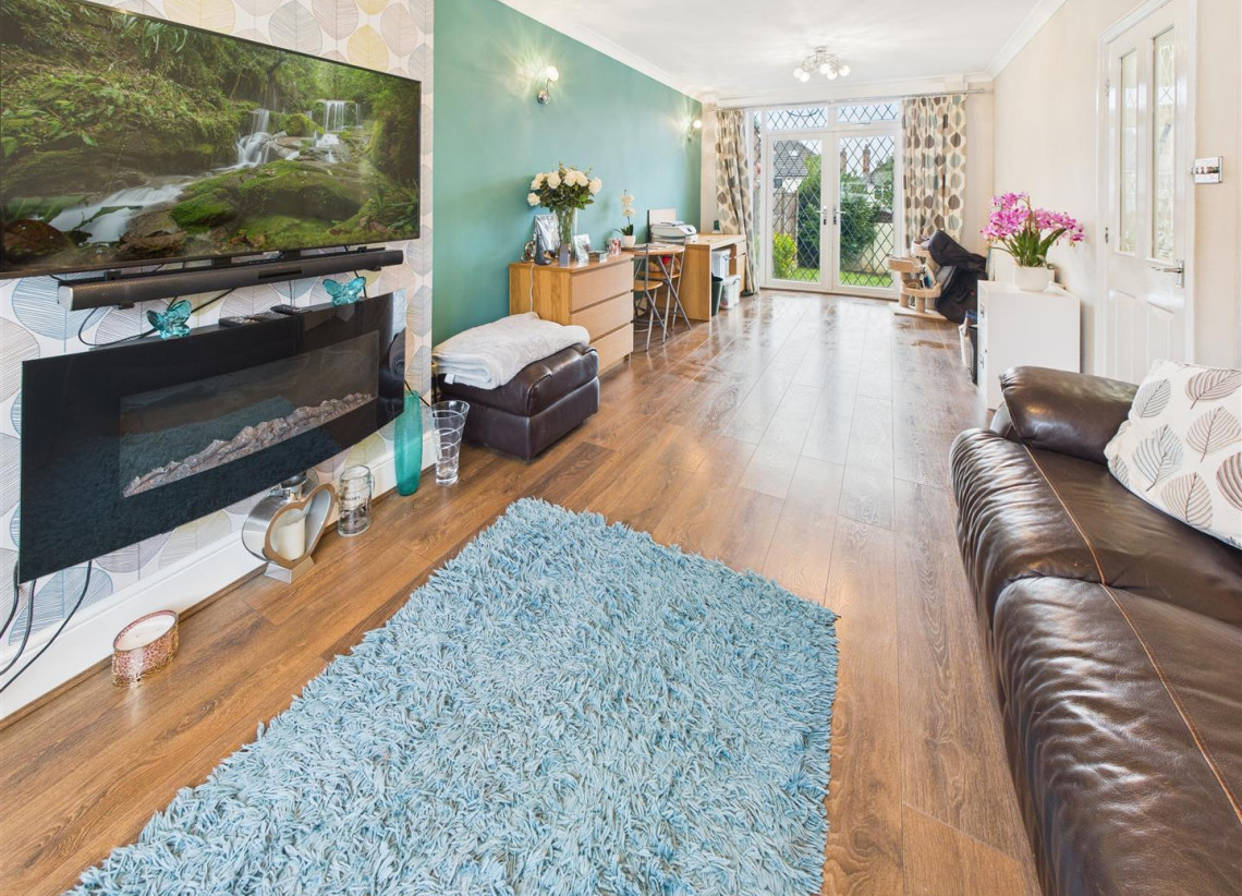 Lounge/Diner - 3.12m x 7.75m (10'2" x 25'5" ) - Double glazed bay window to front and French doors to rear, bright and generously sized through lounge/diner with laminate flooring and feature electric fireplace.