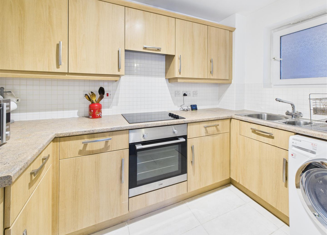 Kitchen - 1.80m x 2.92m (5'10" x 9'6" ) - Modern fitted kitchen with double glazed window to side & featuring a range of wall and base units.