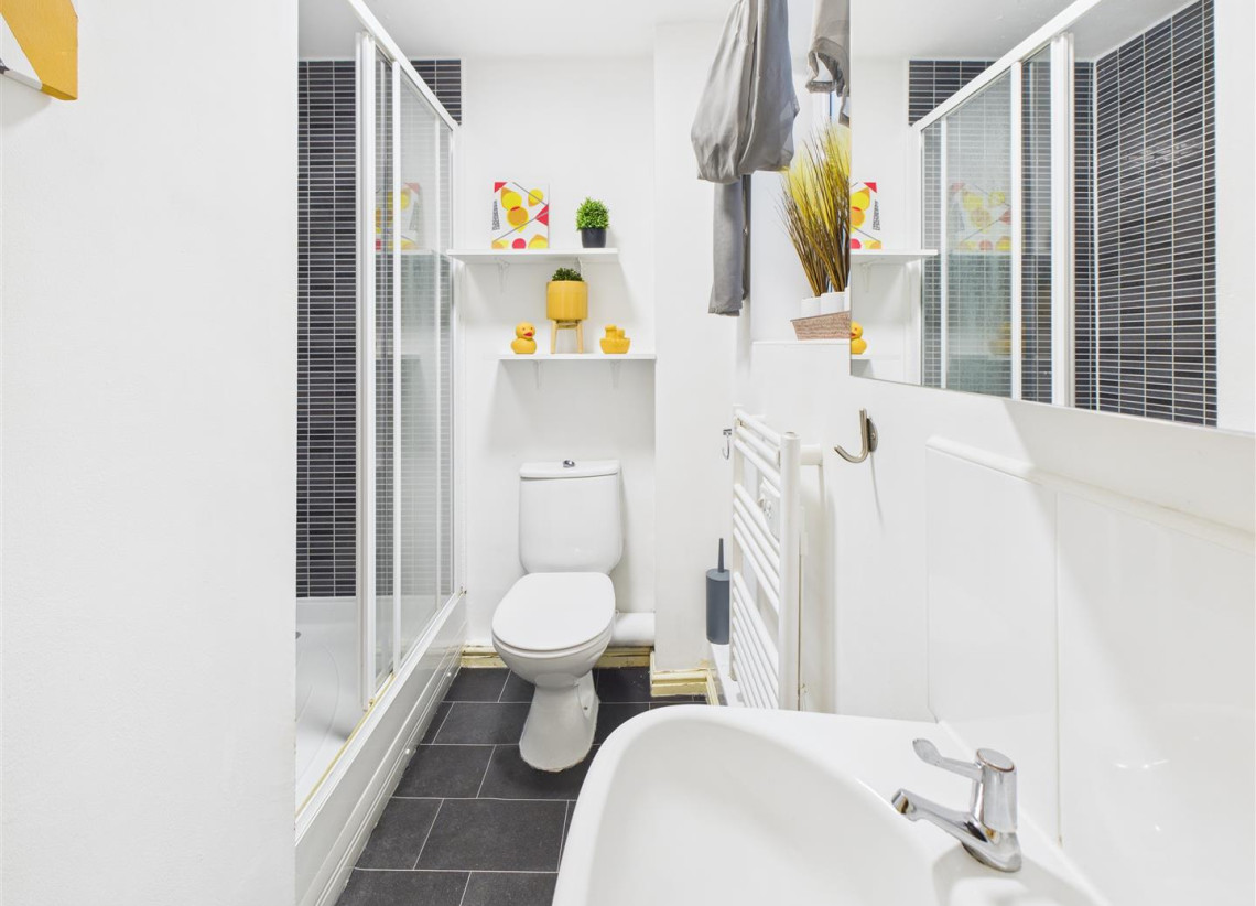 Ensuite - 1.71m x 2.19m (5'7" x 7'2" ) - Double glazed window to side, ensuite with shower cubicle, W/C and hand wash basin.