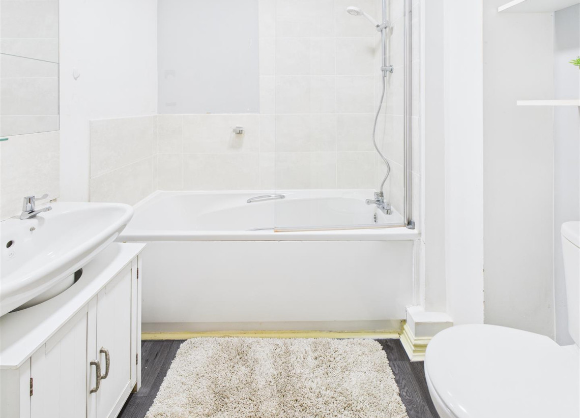 Bathroom - 1.78m x 1.63m (5'10" x 5'4") - Bathroom with white suite to include bath with electric shower over, W/C and hand wash basin