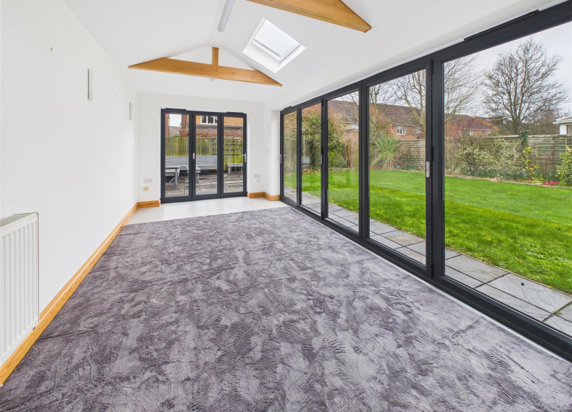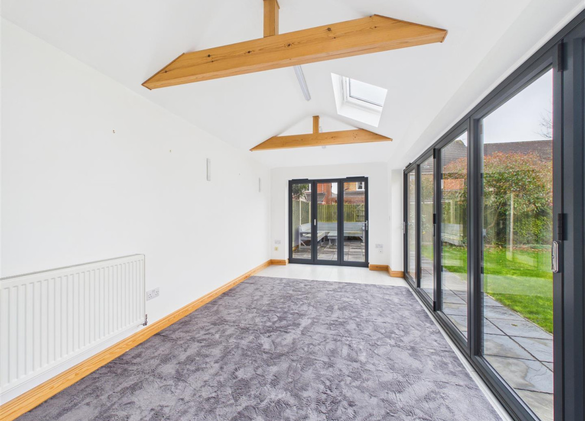 Sun Room/Orangery - 2.61 x 5.60 (8'6" x 18'4") - A perfect space for relaxation with laminated flooring, feature beams, double radiator, bi-folding doors opening up to the garden and two Velux windows.