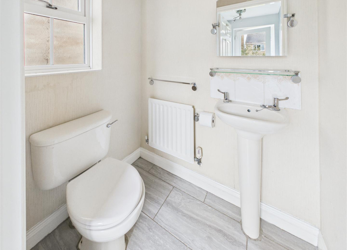 W.C. - 1.56 x 1.13 (5'1" x 3'8") - Obscured glass UPVC double glazed window to side aspect, single radiator, tiled flooring, low level W/C and pedestal hand wash basin.