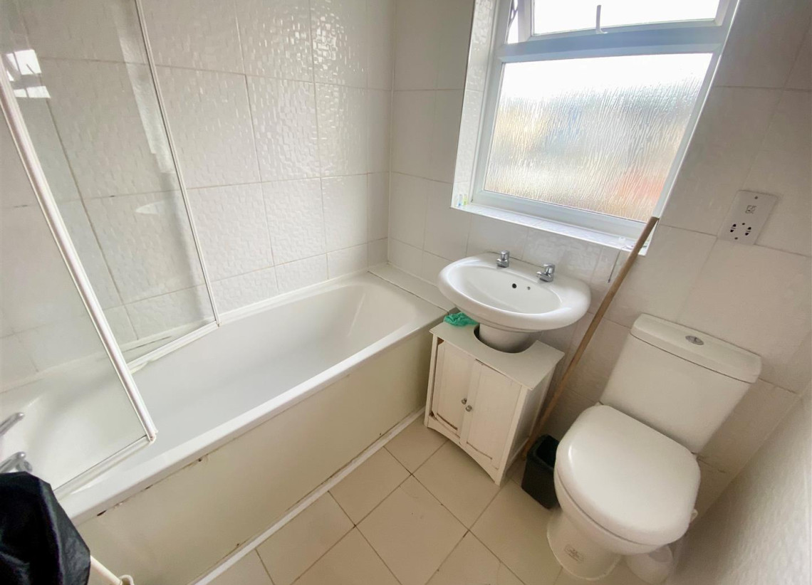 Bathroom - 1.84m x 1.86m (6'0" x 6'1" ) - Double glazed window to rear with privacy glass, white suite to include bath with shower over, W/C and hand wash basin.