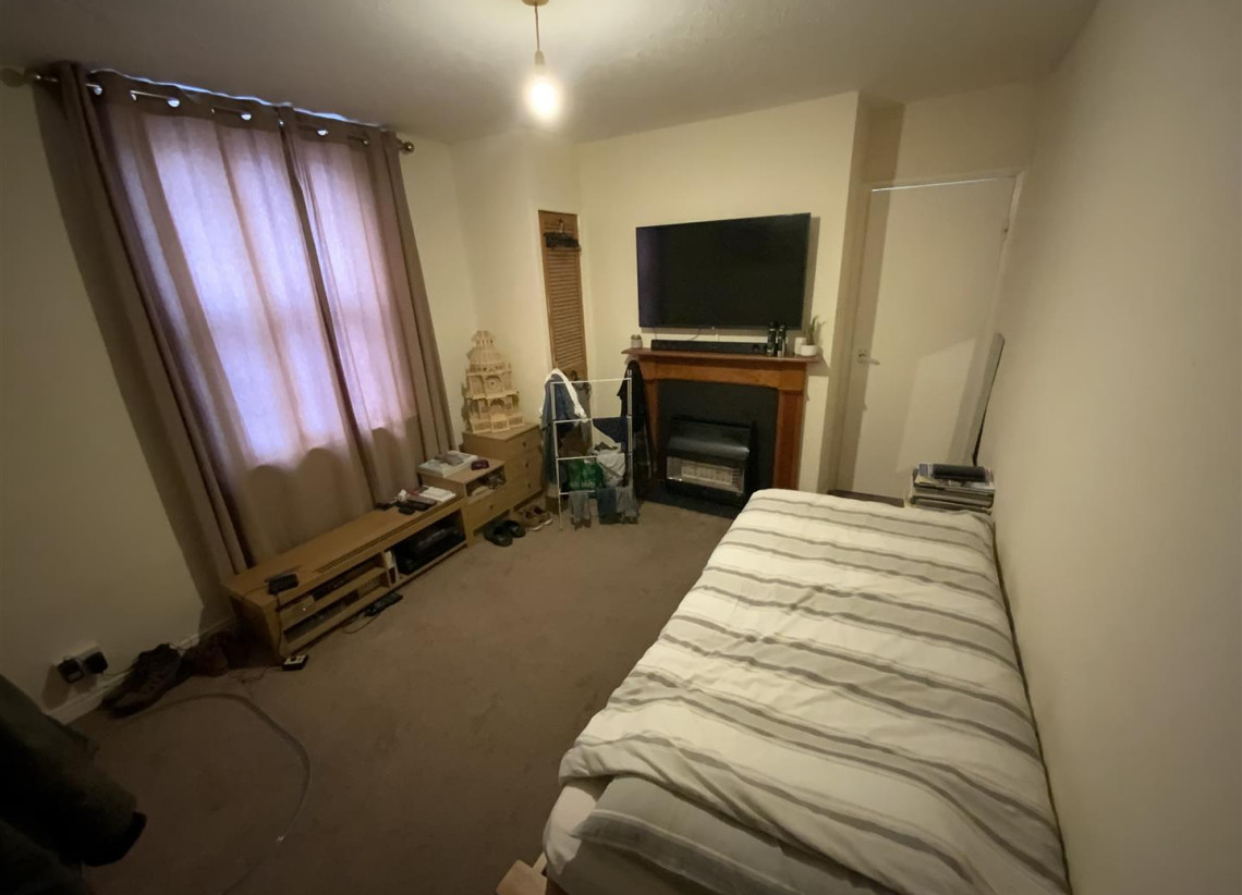 Room 1 - Ground Floor Front - 5.09 x 4 (16'8" x 13'1") - Open plan room with carpet to flooring, bay window to front, fire place and kitchenette