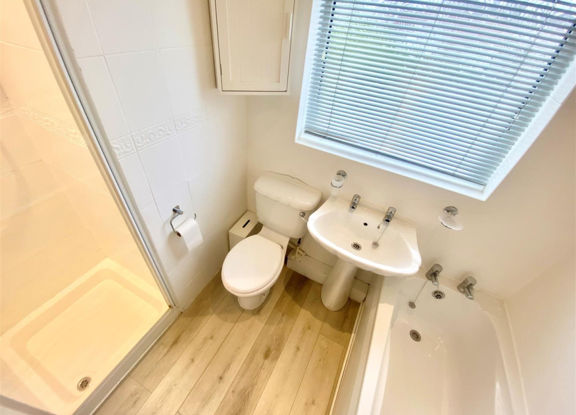 Bathroom - 1.64m x 1.78 (5'4" x 5'10") - Double glazed window to rear with privacy glass, White suite to include bath with separate shower cubicle with electric shower, W/C and hand wash basin.