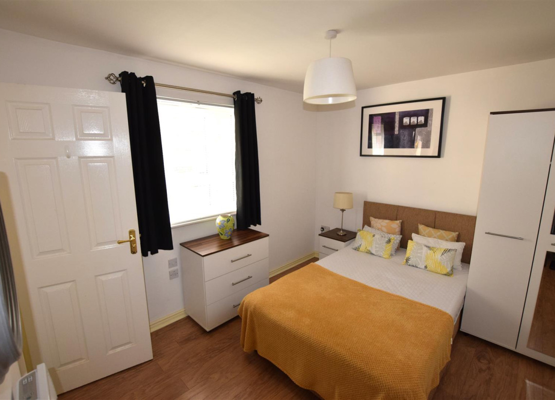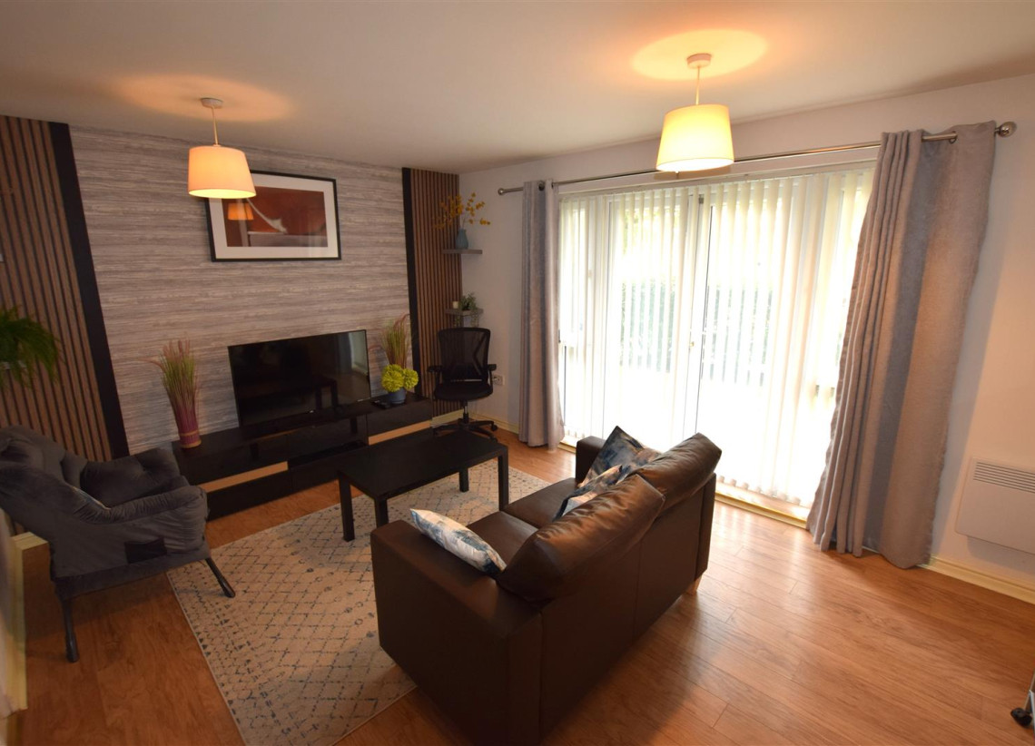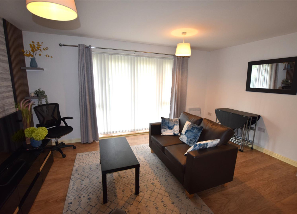A superbly presented modern two bedroom ground floor apartment available to let on a fully furnished basis which benefits from double glazing, electric heating & laminate flooring. There is a spacious lounge with French doors, a modern fitted kitchen with built in electric hob & oven, free standing fridge/freezer & washing machine and the part tiled bathroom comes with a white suite to include bath with mixer shower over, in addition to the main bathroom there is also an ensuite to the main bedroom which has a W/C, hand wash & shower cubicle. Other features include a secure entry phone system and allocated parking.