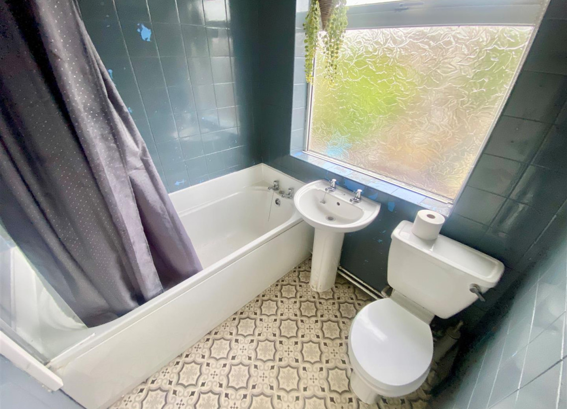 Bathroom - 1.66m x 1.80m (5'5" x 5'10" ) - Double glazed window to rear with privacy glass and white suite including bath with shower over, W/C and hand wash basin.