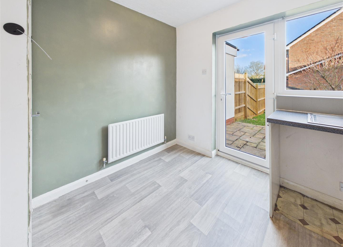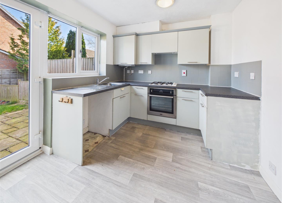 Kitchen/Diner - 2.62m x 3.55m (8'7" x 11'7" ) - Fitted kitchen with a range of wall and base units and integrated gas hob and electric oven & patio door to the rear garden