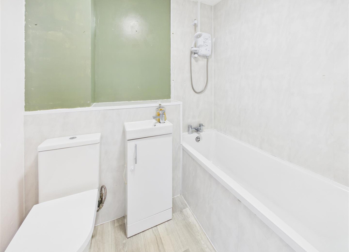 Bathroom - 1.95m x 1.68m (6'4" x 5'6") - Part tiled bathroom with white suite to include bath with shower over, W/C and hand wash basin.