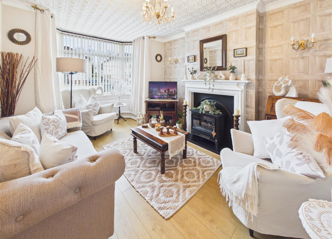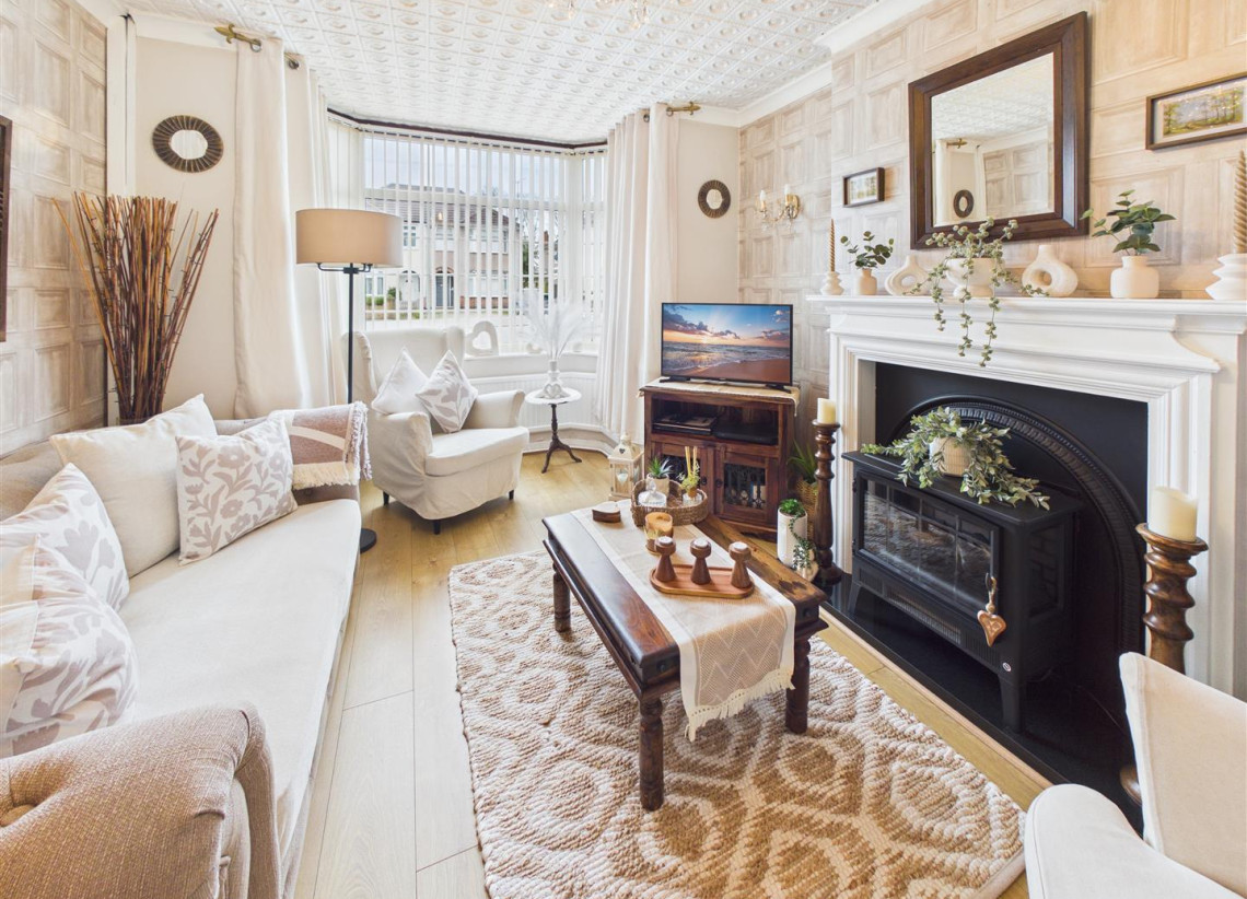 Living Room - 3.24m x 4.42m (10'7" x 14'6") - Double glazed bay window to front, spacious living room with feature fireplace and laminate flooring.