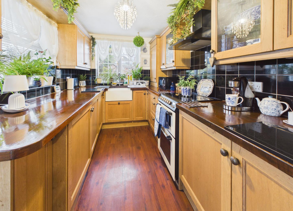 Kitchen - 2.29m x 6.60m (7'6" x 21'7") - Double glazed dual aspect windows, extended kitchen with a range of wall and base units and UPVC door to garden.
