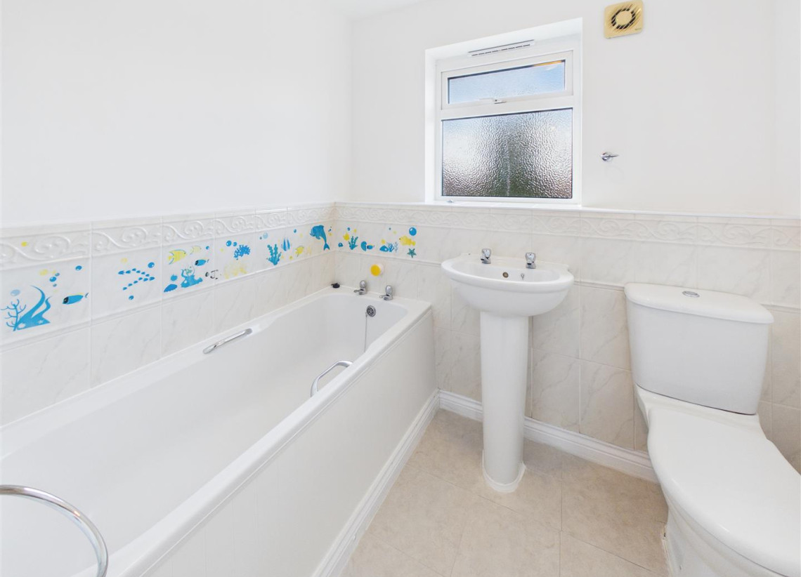 Bathroom - 2.09m x 1.64m (6'10" x 5'4") - Double glazed window to rear with privacy glass, part tile family bathroom with bath, W/C and hand wash basin.