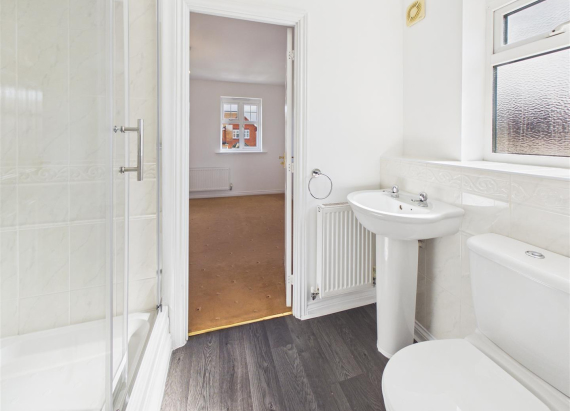 Ensuite - 2.18m x 1.27m (7'1" x 4'1") - Double glazed window to side with privacy glass, ensuite with shower cubicle, W/C and hand wash basin.