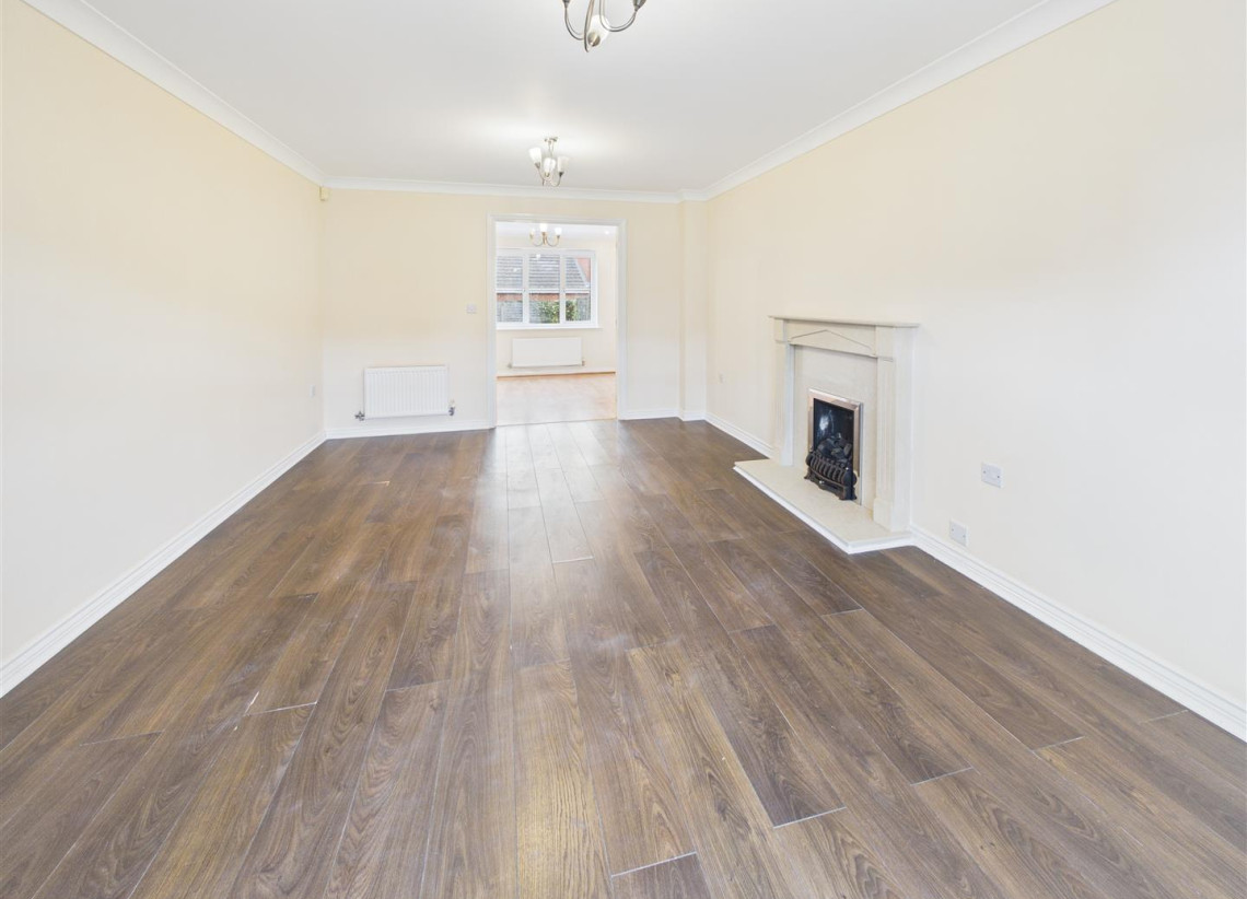 Living Room - 3.53m x 4.85m (11'6" x 15'10" ) - Double glazed bay window to front, large living room with laminate flooring, feature fireplace and double doors to dining room.