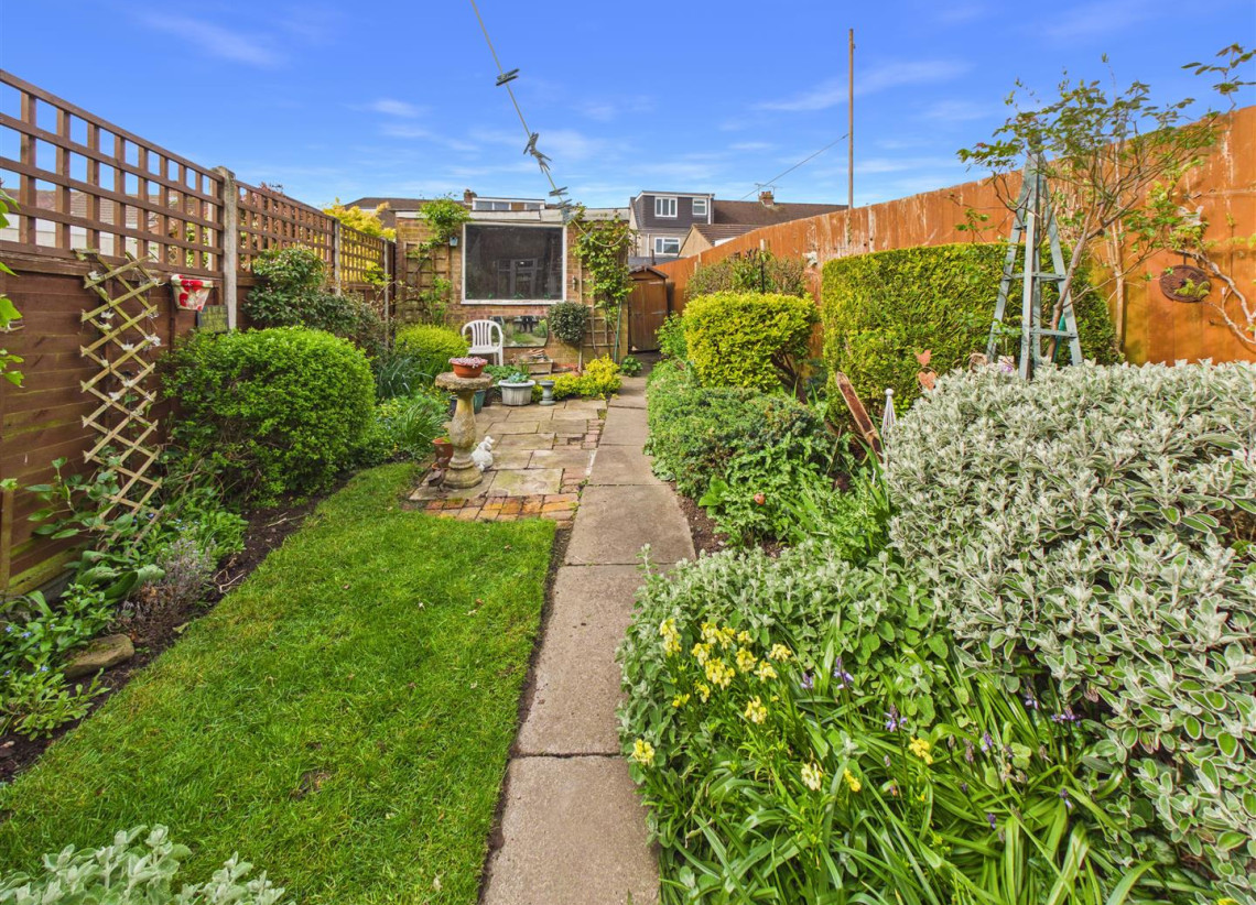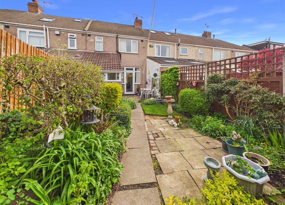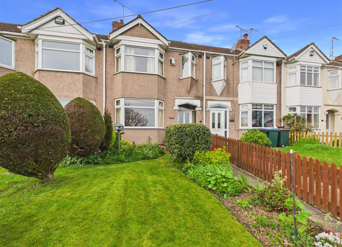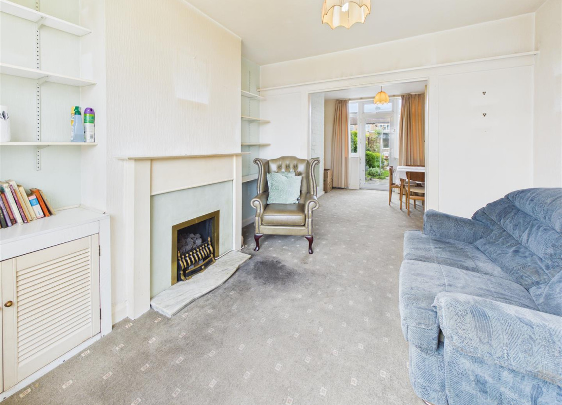 **NO ONWARD CHAIN** A substantial double bayed three bedroom, mid terrace home set back from the road and is within easy reach of local amenities, public transport and local schools, with gas central heating and double glazing. To the ground floor is a spacious through lounge/diner with feature fireplace and built in shelving units, the fitted kitchen has a range of fitted wall and base units with integrated gas hob and electric oven. To the first floor are two well-proportioned double bedrooms, both with fitted wardrobes and a further generously sized single bedroom, the part tiled family bathroom features a white suite with corner shower cubicle, w/c and hand wash basin. Externally there are lawned gardens to front and rear, with the rear also having patio and a garage.