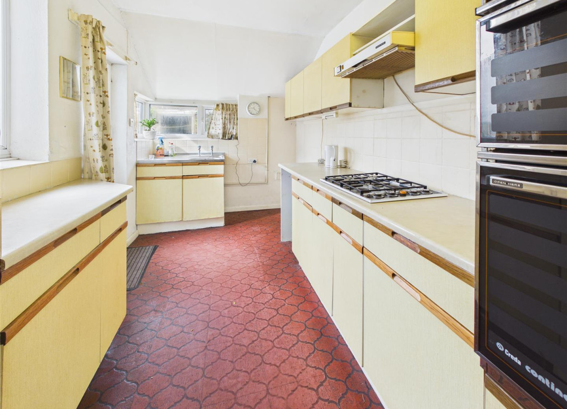 Kitchen - 2.18m x 5.43m (7'1" x 17'9") - Dual aspect double glazed windows and UPVC door to garden, fitted kitchen with range of wall and base units to include integrated gas hob and electric oven