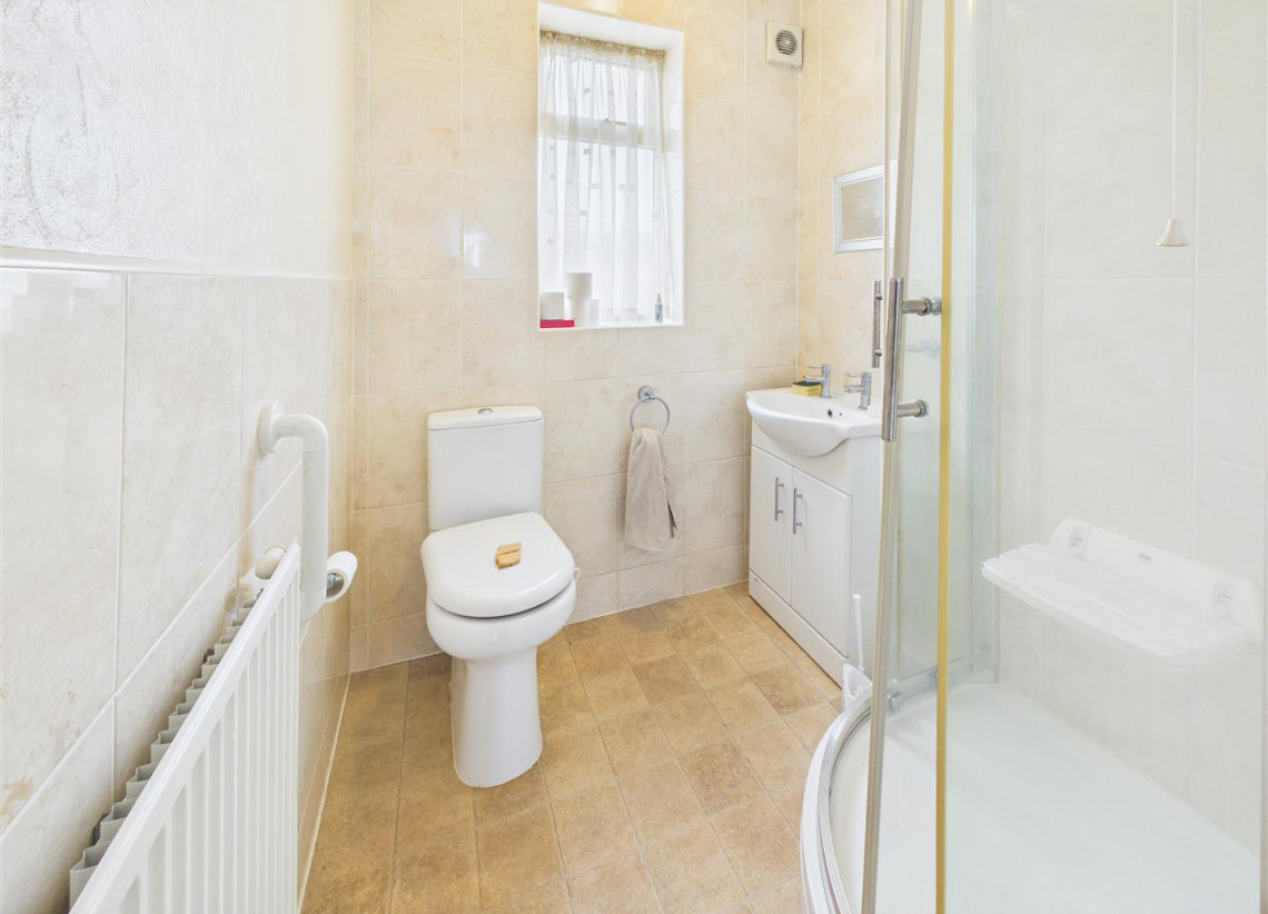 Bathroom - 1.70m x 1.66m (5'6" x 5'5") - Double glazed window to rear, part tiled bathroom with corner shower cubicle, W/C and hand wash basin