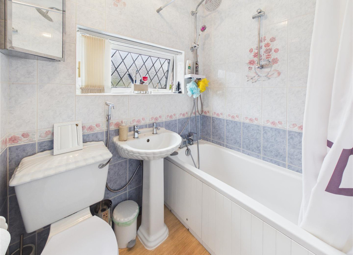 Bathroom - 1.79m x 1.55m (5'10" x 5'1") - Double glazed window to rear, fully tiled bathroom with shite suite to include bath with electric shower and additional mixer shower over, W/C and hand wash basin.